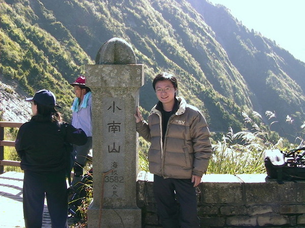 第2天一大清早大家精神奕奕的整理好心情精神抖擻的搞笑拍照為此行揭開序幕!孰不知惡夢的來臨!早上7點離開了美麗的部落-望鄉(註一),前往塔塔加登山口,小客車將我們放在登山口興奮的我們望著遙遠的遠方玉山矗立!